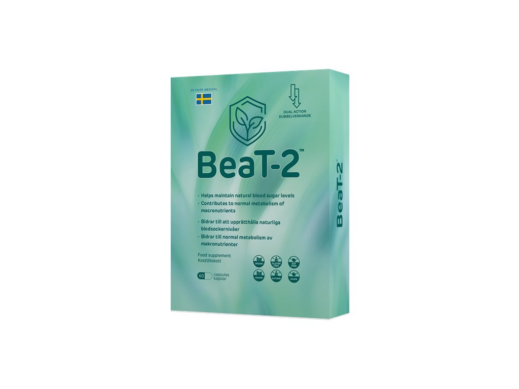 Sme to, čo jeme. BeaT-2 je jedinečný švédsky výživový doplnok zameraný na dôležité živiny. Skladá sa z funkčných potravinových zložiek, ktoré spolupracujú s vaším telom na udržiavaní optimálnej hladiny cukru v krvi a na zachovaní energie počas celého dňa.